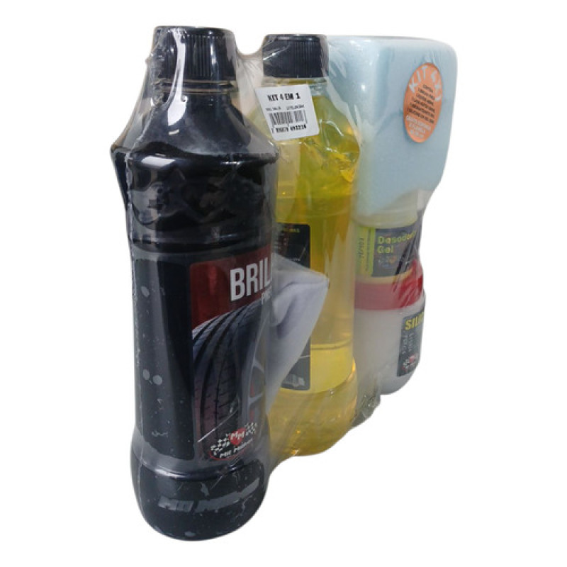 Kit 4x1 Aromatizante Gel Brilha Pneu Lava Auto Silicone Gel